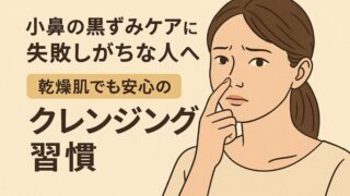 部位別の黒ずみ対策 小鼻の黒ずみケアに失敗しがちな人へ。乾燥肌でも安心のクレンジング習慣 小鼻の黒ずみが消えないのはなぜ?「一生懸命ケアしているのに小鼻の黒ずみが残ってしまう…」そんな悩みを抱える人は少なくありません。黒ずみの正体は、毛穴に詰まった皮脂や角栓が酸化して黒く見えている状態です。さらに、メイク汚れや古い角質の残りも原... 2025.09.21 部位別の黒ずみ対策黒ずみケア方法